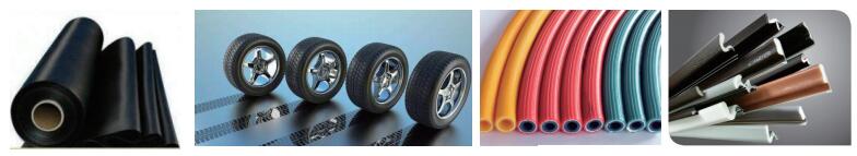 应用领域:胶片、胶管、轮胎(内外胎)、密封胶条、硅橡胶、阻尼橡胶等。